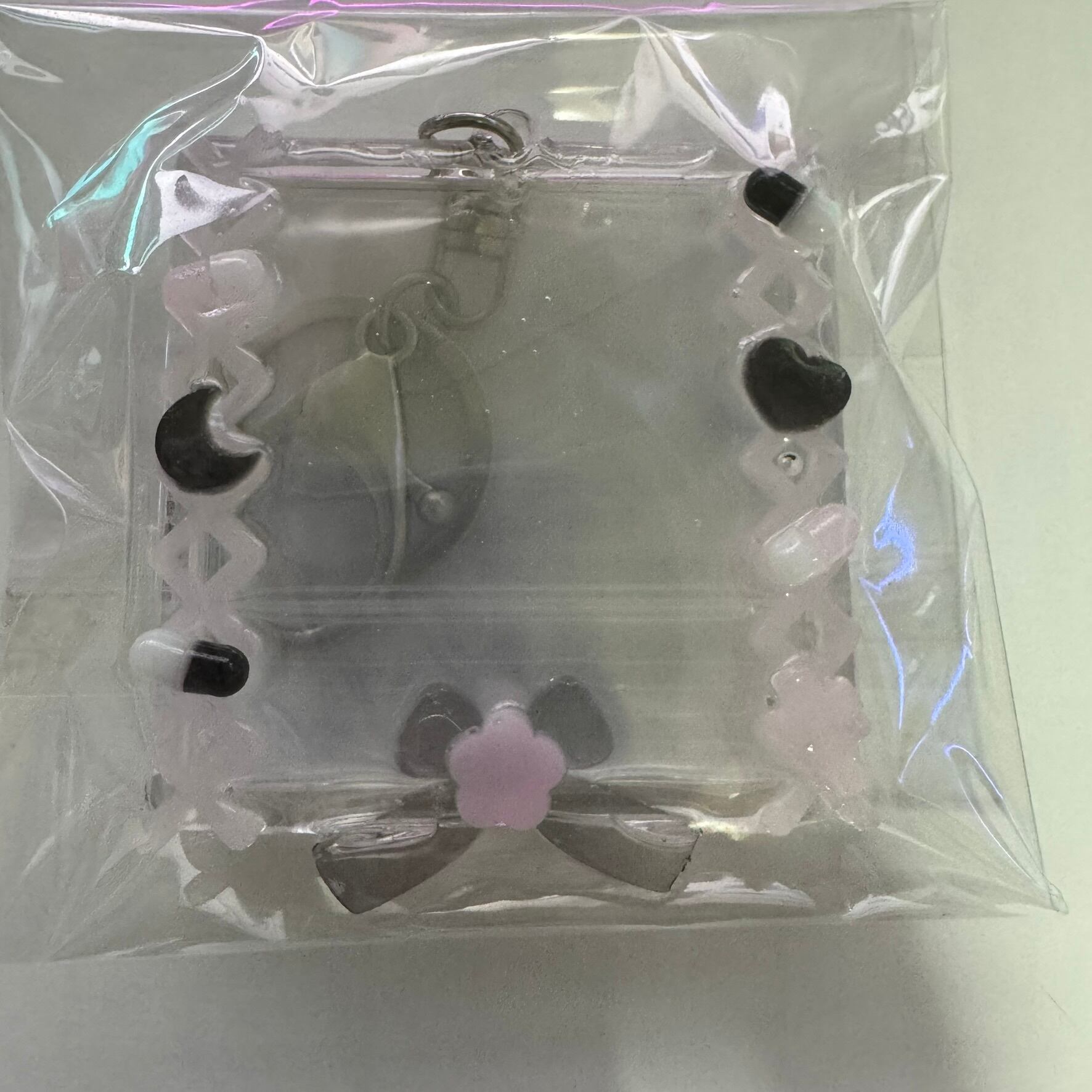 正方形のフォトキーボルダーには、お気に入りの写真を入れることができます。