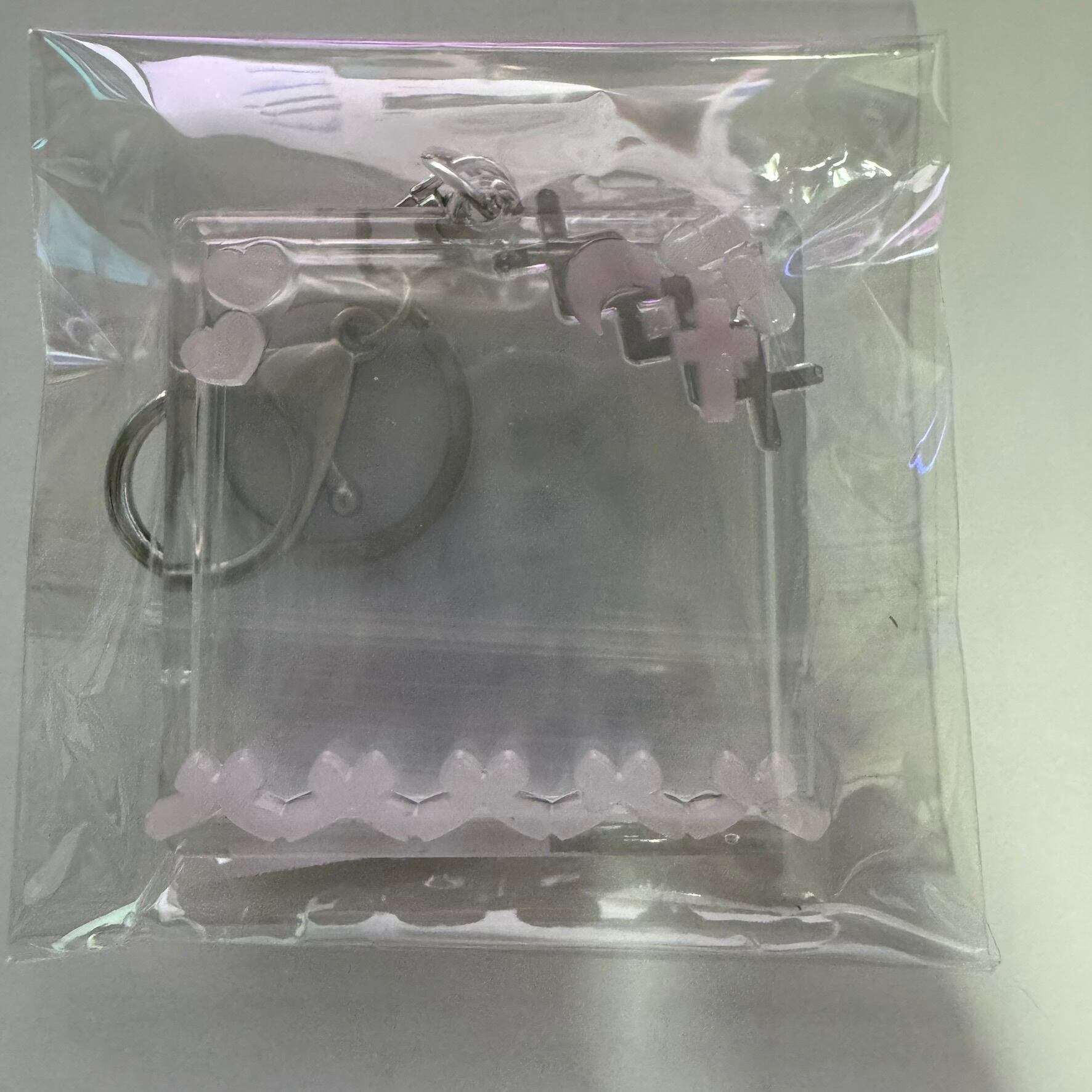 正方形のフォトキーボルダーには、お気に入りの写真を入れることができます。